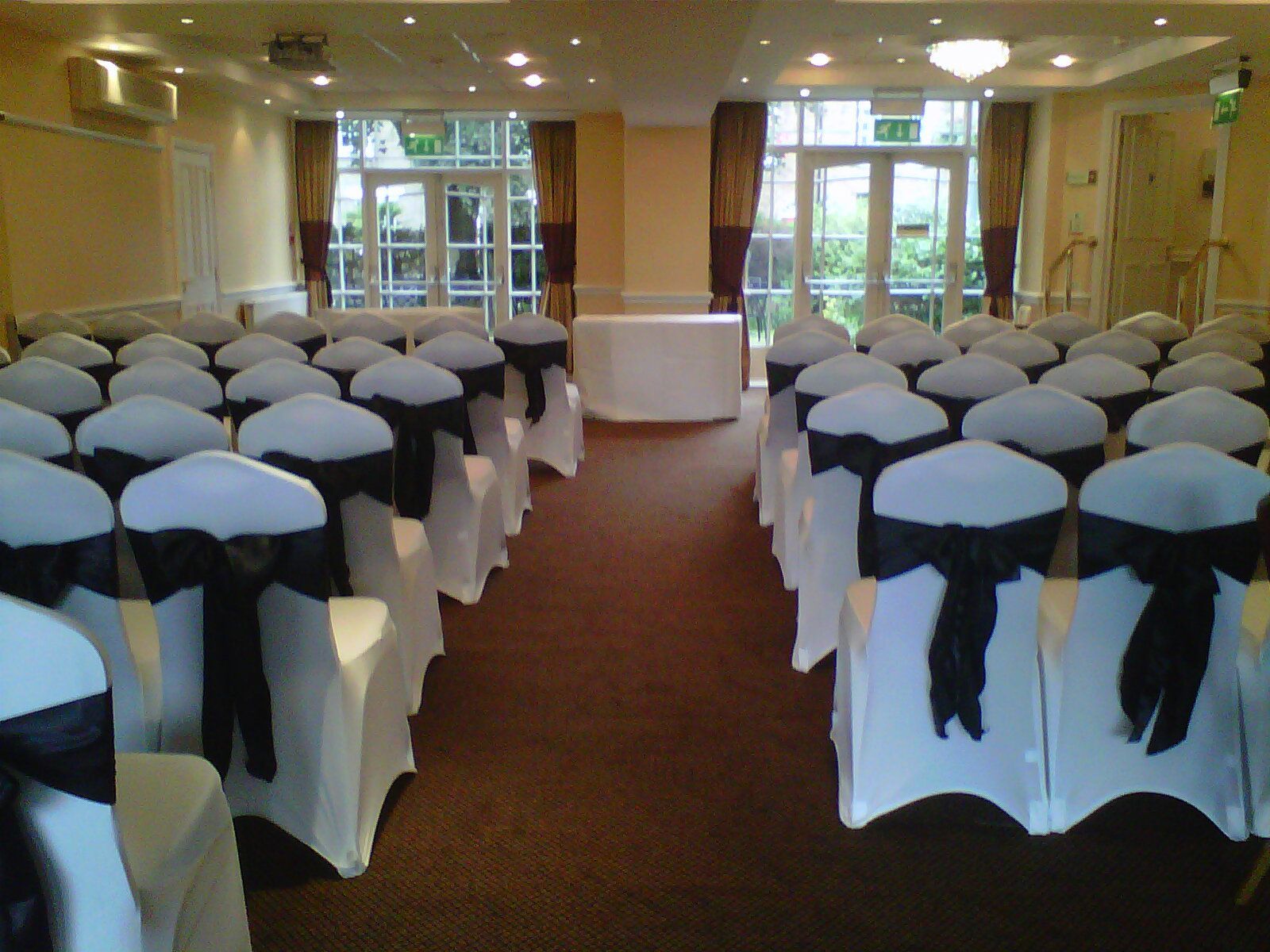 CHAIR COVERS AVAILABLE IN WHITE, IVORY, CREAM & BLACK.
