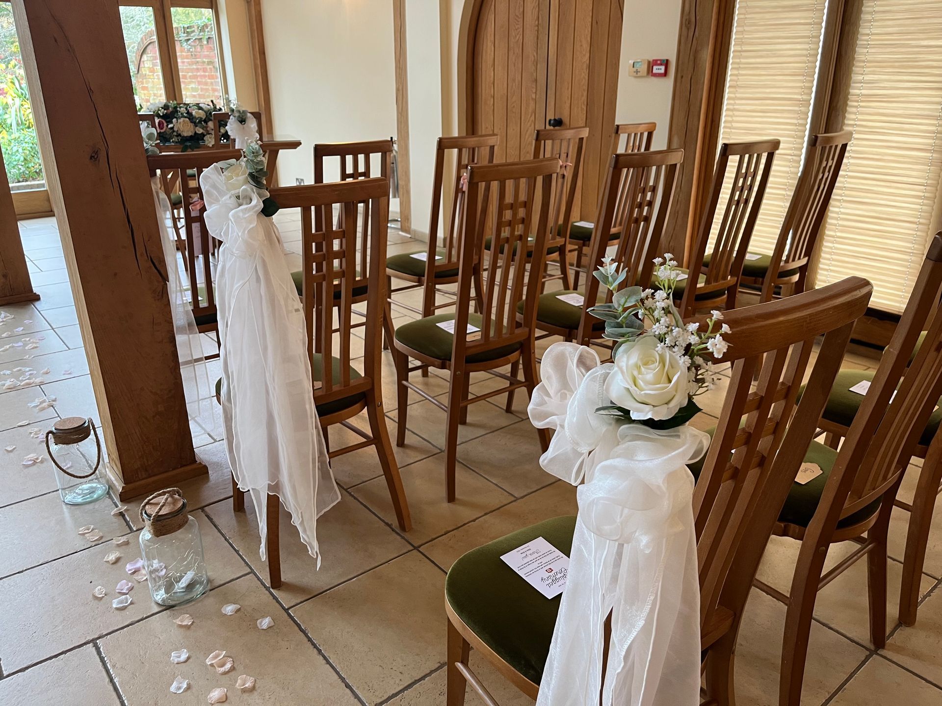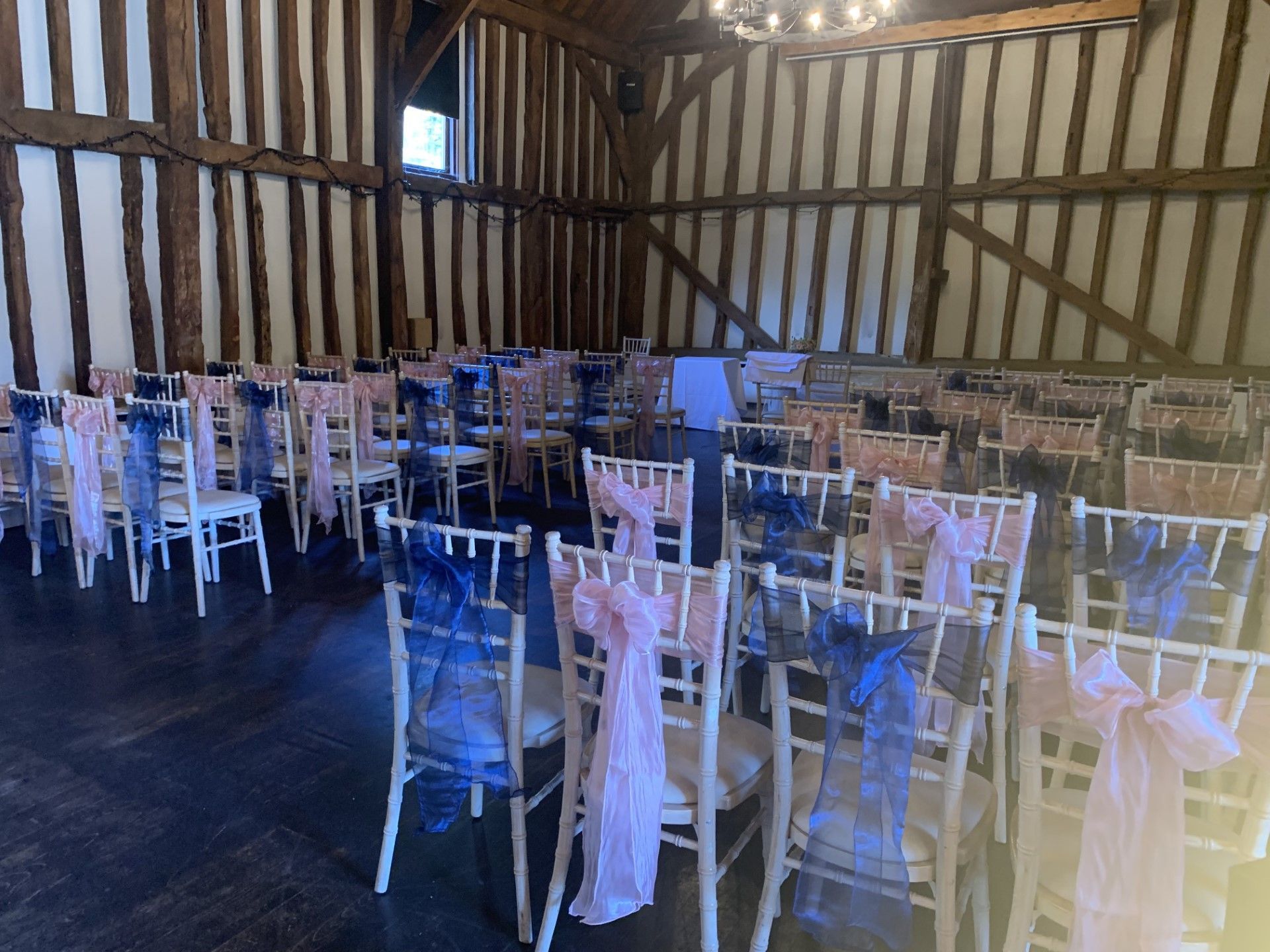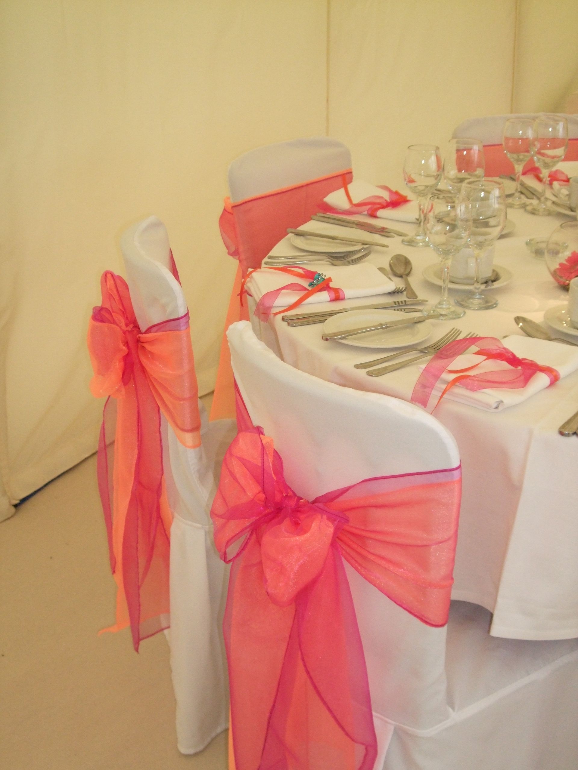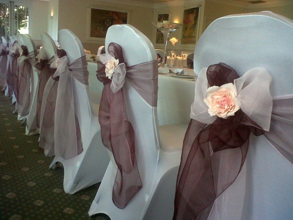 HUGE VARIETY OF CHAIR SASHES AVAILABLE IN ORGANZA, TAFFETA, SATIN, HESSIAN, CHEESECLOTH, LACE & DIAMANTE.
